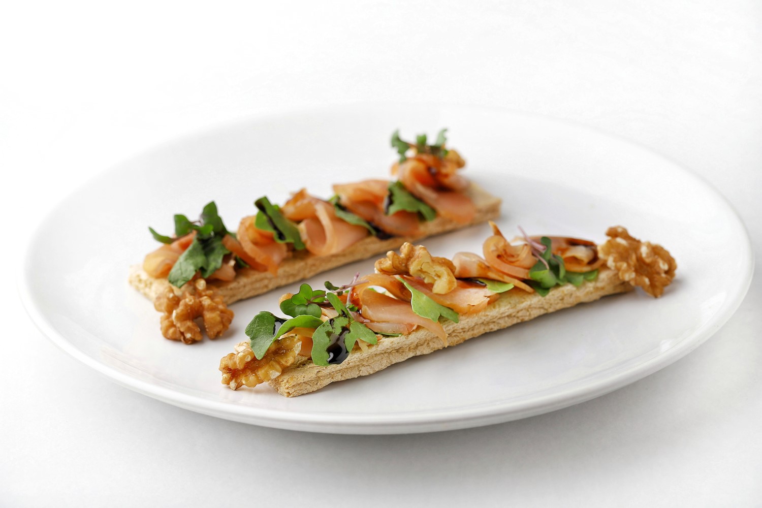 Хлебцы со слабосоленым лососем, сливочным сыром и авокадо