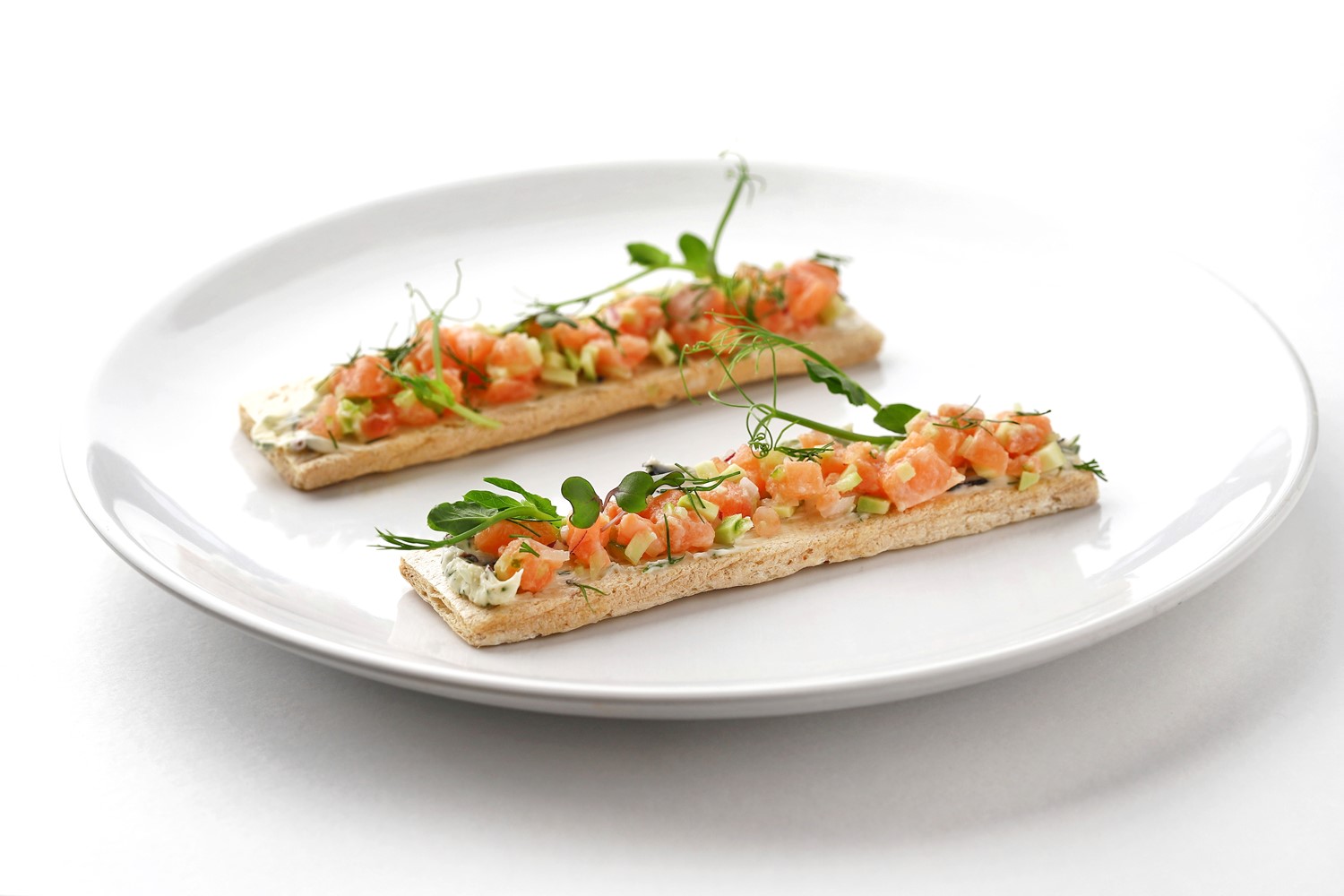 Хлебцы со слабосоленым лососем, сливочным сыром и авокадо
